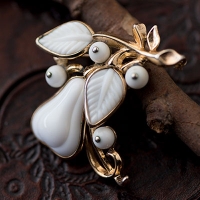 Trifari トリファリ-ミルクガラス洋梨アンティーク・ブローチ★アルフレッド・フィリップ!