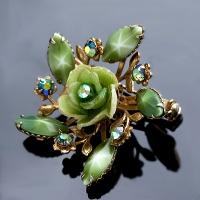 • Cathe-星とモスグリーンローズ・ブローチ