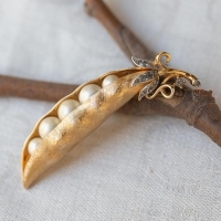 • Trifari トリファリ-えんどう豆ゴールド&パール・ブローチ