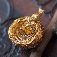 • Jeanne-ワイヤー鳥の巣と雛バード・ブローチ