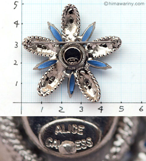 裏にALICE CAVINESSの刻印入り。Alice Caviness アリス・キャビネスは、1945年から1997年頃まで継続していたコスチューム・ジュエリーのコレクティブル・ブランド。