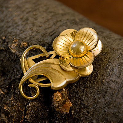 アールヌーボーとアールデコの中間のようなスタイルのぽってりとしたお花デザインのアンティーク・ドレスクリップです。