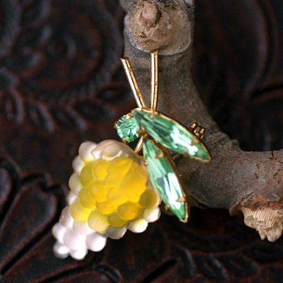 ●状態:★★☆☆ビンテージ・グッド(ぶどうの房先端下から三番目の実の一部が欠けています。拡大写真にてご確認ください。全体のコンディション、ラインストーンの輝きは素晴らしい状態です。)