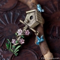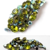 全体がグリーンを基調としたカラーとなっていますが、よくよく見ると、オリーブグリーンの間、そこここには、葉っぱにしたたる雫を思わせる水色のオーロラ加工がほどこされたラインストーンが散りばめられています。