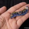 サファイヤブルーをメインカラーに、クリスタルと一筋オリーブカラーが効いたラインストーンが美しいアンティーク・ブローチ。ブローチの裏には、MADE IN AUSTRIAの刻印入りのオーストリア製アンティーク・ジュエリーです。