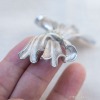 リボンの表面のテクスチャーの筋模様からくるマットな燻し銀のようなシルバーから静かに輝くシルバーの陰影、そしてくるんと翻ったリボンのつややかなクローム・シルバー。シンプルなメタル素材が見せる豊かさが力強く、魅力的なお品です。