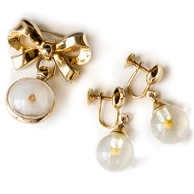 ●サイズ:[ブローチ] 5cm x 2.6cm [クリップ式イヤリング] 2.2cm x 1.7cm