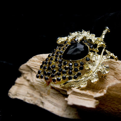 ●カラー、材質:ゴールドカラー・メタル、ブラック・ラインストーン