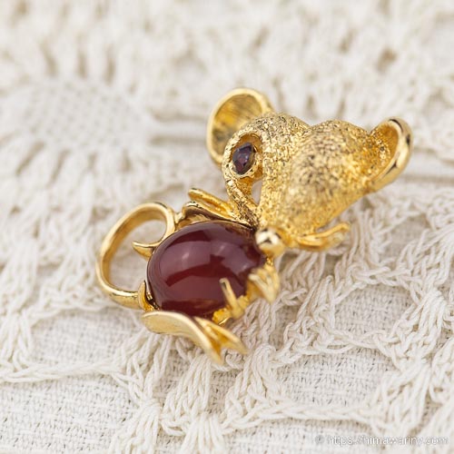 ルビーレッドの愛くるしい瞳で小首をかしげたちっちゃなマウスのヴィンテージ・ブローチ。