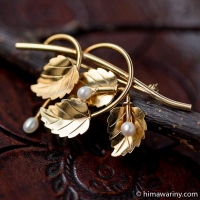 • Catamore-K12金-三粒の真珠の実小枝ブローチ
