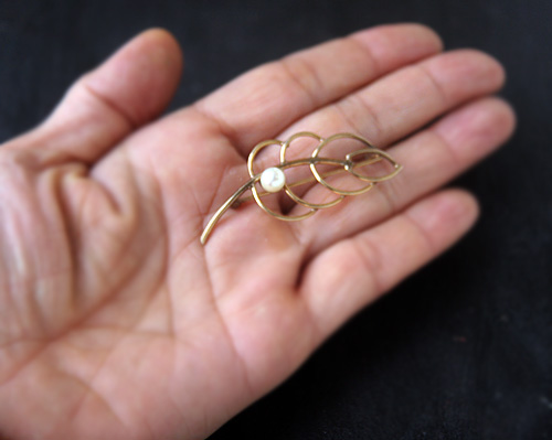ゴールドフィルド(金貼り)は、通常の金メッキ(ゴールド・コーティング)の百倍以上の厚みのあるもので、熱で圧着しているため丈夫で剥げにくく、色や質感も金無垢と遜色のない加工法です。西欧ではデザイン性の高い上質なアンティークジュエリー、ヴィンテージ・アクセサリーによく見られます。
