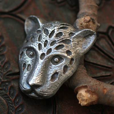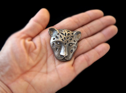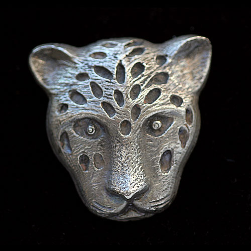 アンリ・ルソーの絵に出てきそうなジャガー/豹の顔のアンティーク・ブローチ。