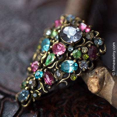 ターコイズブルー、ライトマリンブルー、マジェンタ、ライムグリーンetc.と食べちゃいたくなるような色合わせは、「フルーツサラダ」と呼ばれるジュエリーで、Hollycraft ホリークラフトのコレクターズ・アイテムです。