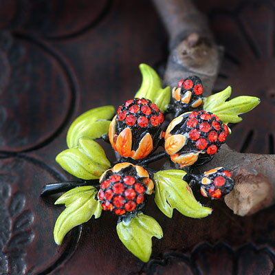 ●カラー、材質:ブラックカラー・メタル、ラインストーン、エナメルペイント