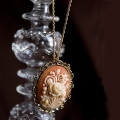 ファッション性の高さが醍醐味のコスチューム・ジュエリーですが、上質なものでは、時に本物の宝飾品のように、貴金属や宝石が使われています。ゴールドフィルド(金張り)や12金のジュエリーは日本では馴染みが薄いものですが、ベースメタルの1/20以上の重さの金(この場合はK12)を熱と圧力で圧着したもので金メッキより100倍の厚みがあります。見た感じも無垢の金に見劣りせず、長期間使用しても剥げにくいので、欧米では古くからファッション・アクセサリーではなく、ファイン・ジュエリーとして扱われているものです。
