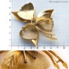 華やかさがある大きさのコサージュでありながら、美しいサテンの輝きを讃えたゴールドと、それにマッチしたシックな琥珀色のラインストーンと、色目に落ち着いた統一感があるので、大人っぽく、上品なテーストです。