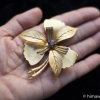 ブローチ、4つのパーツがセンター一点で留められていて、手で押すと回ります。つけていて取れてしまいそうとか、そういうゆるさではなく、ご使用に差し支えはありませんが、予めご了承ください。