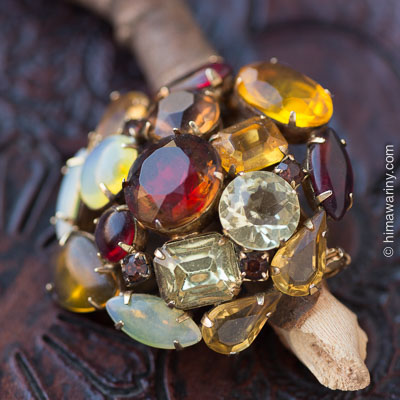 【訳あり商品】夕日に染まる森の色が散りばめられたマジカルタイムのジュエル、大人の彩りが美しいヴィンテージ・ブローチ。