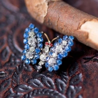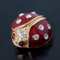 テントウムシは、日本では太陽に向かう虫=天道虫、アメリカでは、英語でladybug レディバグ(女性の虫)と呼ばれ、行く先々に幸運をもたらすといわれる女性のためのラッキーシンボル。世界各国のヴィンテージ・アクセサリーで長く愛されてきた人気のモチーフです。