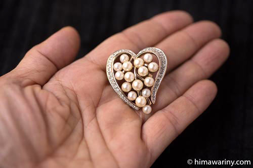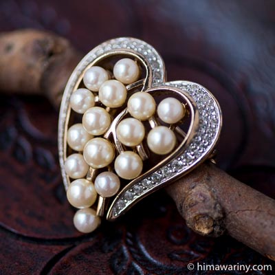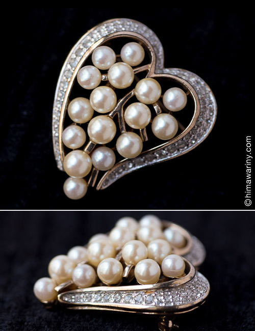 ハートシェイプでドーム型のフォルムとディティールが美しいアンティーク・ブローチ。