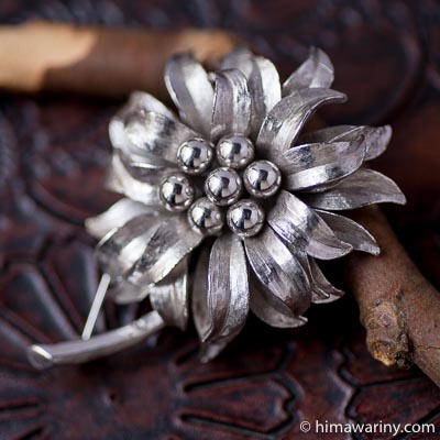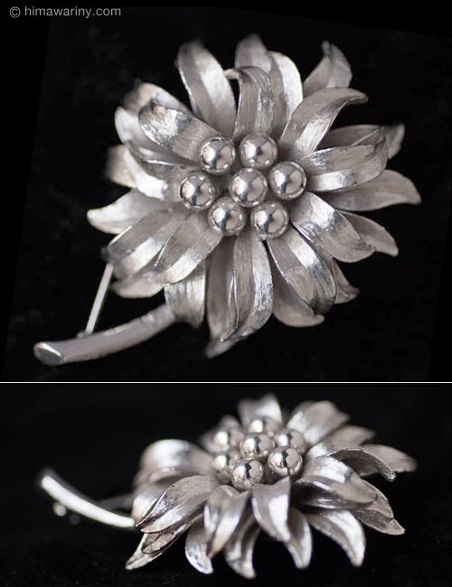 アンティーク・ブローチから現代ものまで、花はいつの世も女性の心にポジティブなエネルギーを与えてくれるモチーフ。こんなゴージャスでクールなブローチを身につけると、背筋がのび、凛とした気持ちで胸を張りたくなります。