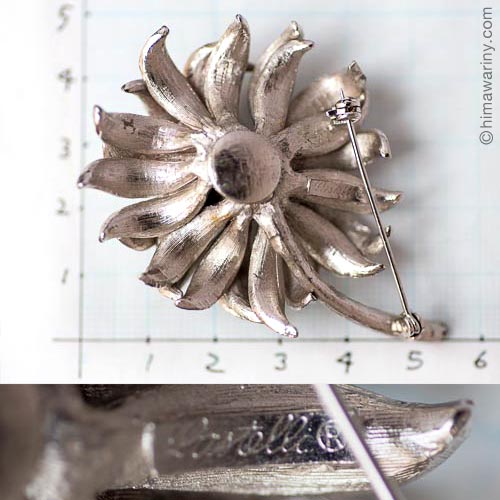 ブローチの裏側には、エレガントな筆記体のロゴでPastelli ®の刻印入り。Pastelli パステリは、ペンシルバニア州ピッツバーグで創立したRoyal Of Pittsburgh社のジュエリー・ブランド。1950年代から1980年代まで継続していたと言われています。