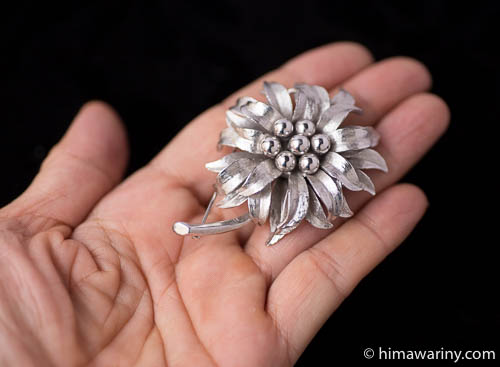 ゴージャスなダリアのような花のアンティーク・ブローチ。