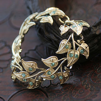 三枚の葉っぱが一つになったパーツが、くるんと巻いた茎のところでリンクしたヴィンテージ・ブレスレット。