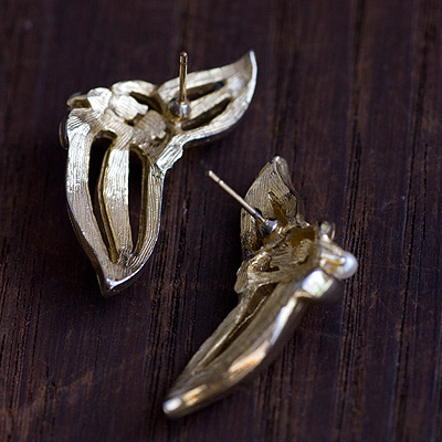 パールを使ったコスチューム・ジュエリーを数多く出したブランド、Richelieu リシュリュウのヴィンテージ・ピアスです。幸福の象徴、ドーブを抽象化したようなシェイプのデザインで、耳に付ける角度によって雰囲気が変わります。