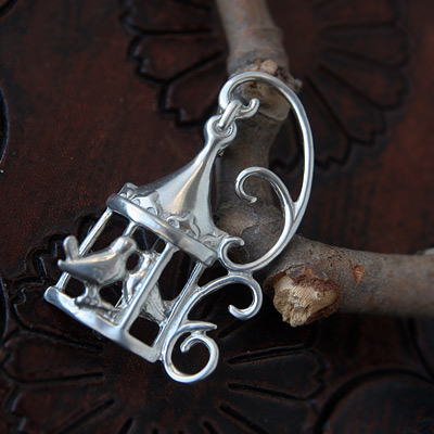 鳥籠の屋根の部分、籠をつるしている蔓草デザインの部分のデザインが素敵です。