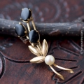 Austria-マリングレープ色プラム・フルーツガラス・ブロ... Wells-K14金-オニキス&真珠の野の花ブーケ・ブローチ
