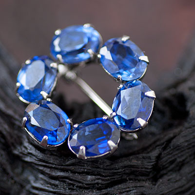 心惹かれる青は、限りなく透明に近いブルーの海を思わせる美しさ。シンプルで小さいブローチですが、澄み切ったブルーがとても印象的でうっとりしてしまう本当に綺麗なお品です。
