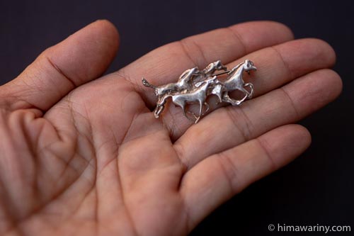 馬の走る瞬間を的確に捉えつつ、プリミティブなデザインなのもブローチとして素敵なお品です。