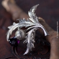 ガラスはぐるりしっかりとしたプロングでセットされていて、その周囲をカットとテクスチャーがほどこされたチェーンが傾斜した状態で取り囲んだデザインです。