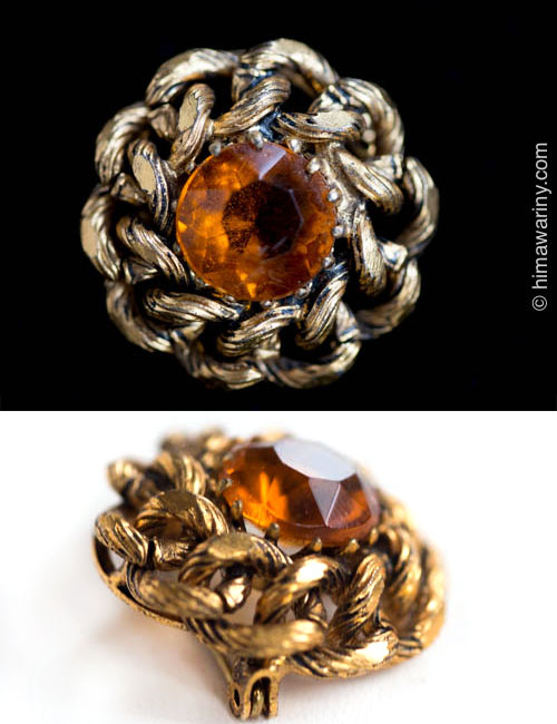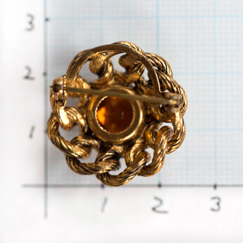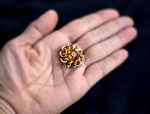夕焼けが閉じ込められたような美しいオレンジ色のファセットカットが魅力的なヴィンテージ・ブローチ。