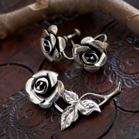 • Beau Sterling-シルバー925-静寂の情熱ローズ・ブローチ&イヤリング・セット