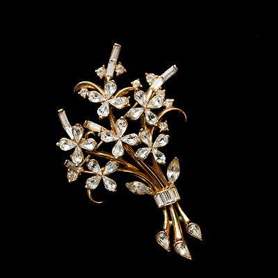 1910年にその前身である Trifari and Trifari をスタートし、1925年ニューヨークの5番街にTrifari Krussman and Fishel として創立したコスチューム・ジュエリーの最高峰ブランド。アイゼンハワー大統領夫人やブロードウェイのショーやハリウッド映画界からの依頼で制作もしています。特に1930年~1968年には、高級宝飾店カルティエやヴァン クリーフ&アーペルのジュエリーを手がけていたアルフレッド・フィリップがチーフデザイナーとして在籍。特に彼が1940年代にデザインしたコスチューム・ジュエリーの数々は、当時から人気が高く、今も多くのヴィンテージ・コレクターを魅了している伝説のコレクティブル・アイテムです。