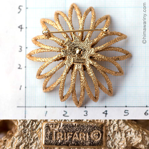 1910年にその前身である Trifari and Trifari をスタートし、1925年ニューヨークの5番街にTrifari Krussman and Fishel として創立したコスチューム・ジュエリーの最高峰ブランド。アイゼンハワー大統領夫人やブロードウェイのショーやハリウッド映画界からの依頼で制作もしています。特に1930年~1968年には、高級宝飾店カルティエやヴァン クリーフ&アーペルのジュエリーを手がけていたアルフレッド・フィリップがチーフデザイナーとして在籍。特に彼が1940年代にデザインしたコスチューム・ジュエリーの数々は、当時から人気が高く、今も多くのヴィンテージ・コレクターを魅了している伝説のコレクティブル・アイテムです。