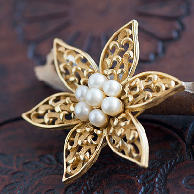 1910年にその前身である Trifari and Trifari をスタートし、1925年ニューヨークの5番街にTrifari Krussman and Fishel として創立したコスチューム・ジュエリーの最高峰ブランド。アイゼンハワー大統領夫人やブロードウェイのショーやハリウッド映画界からの依頼で制作もしています。特に1930年~1968年には、高級宝飾店カルティエやヴァン クリーフ&アーペルのジュエリーを手がけていたアルフレッド・フィリップがチーフデザイナーとして在籍。特に彼が1940年代にデザインしたコスチューム・ジュエリーの数々は、当時から人気が高く、今も多くのヴィンテージ・コレクターを魅了している伝説のコレクティブル・アイテムです。