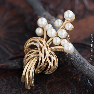大きさ違いと、配置している高さ違いで、遠近感が強調され、イキイキとしたパールが素敵なヴィンテージ・ブローチ。