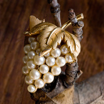 たわわに実ったパールの葡萄が美しいヴィンテージ・ブローチになりました。アメリカのヴィンテージ・コスチュームジュエリー・ブランド、Crown Trifari クラウン・トリファリのお品です。