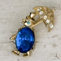 エメラルドグリーンのラインストーンの瞳、ターコイズブルーのボディ、そして頭と尾羽の真ん中にはアイス・ラインストーンが埋め込まれたとても凝ったクラフトのヴィンテージ・ブローチ。