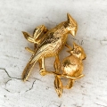 Krementz-カージナルの親子鳥ブローチ