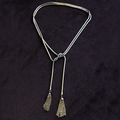 ●状態:★★☆☆ビンテージ・グッド(元々はゴールドカラーだったものが、ラリアット・ネックレスの性質上、こすれて地色のシルバーが見えて色むらがあります。ヴィンテージらしい風合いで、汚いとか、変ということはないと思います。タッセルの鎖のうち、他より短いものがあります。)