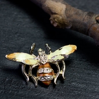 ボディは大粒で少しメタリックがかった反射をみせるラインストーン。それを取り囲むようなテントウムシの羽根。