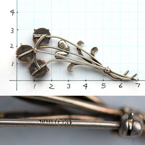 ●刻印:STERLING(非常に見えにくいですが、裏にして右下の葉に刻印あり)、WHITE CO.(ピン)